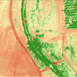 We are excited to announce our latest field technology and expansion to our UAS (unmanned aerial system) services. cbec recently acquired multi-spectral images from our UAS to monitor restoration plantings along Cordova Creek in Sacramento. This is our award winning project that was completed in 2016. Near the center of the images the transition from phase one plantings (2015), and phase two plantings (2016), can be seen. Using a ratio of the plants spectral characteristics plant health can be tracked using the normalized difference vegetation index (NDVI). In the first image a false color composite is shown, where near-infrared light is displayed as red. In the second image calculated NDVI values are shown, where green = healthy vegetation. From the ground we can see the vegetation is flourishing but we can now collect data to prove it. This technology can not only be used to determine vegetation health, but also the types of vegetation, including differentiating between native and non-native vegetation through image calibration.