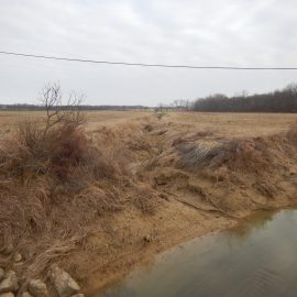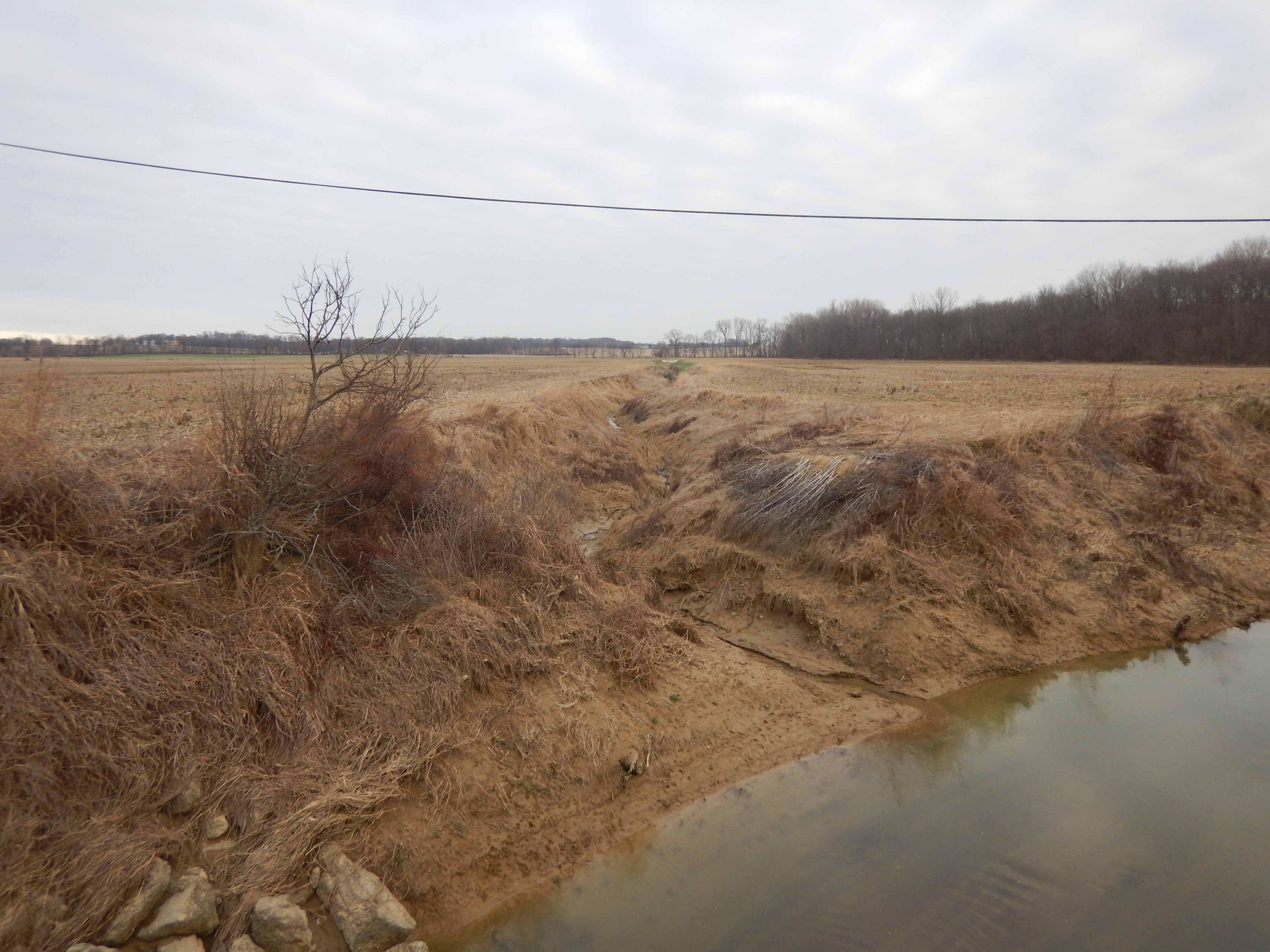 Bank and channel stabilization techniques were implemented to provide a long‐term solution to limit future bank erosion and channel degradation within the reach. The downstream 750 feet of the Metz Lateral Drain near the confluence with Big Creek had deeply incised to a depth of over 10 feet and widened with a top width of up to 50 feet. The incision and subsequent widening of the channel has led to an over‐steepened bank profile allowing for bank instability and erosion. The bank erosion has contributed to a loss of the adjacent agricultural land and likely impacted downstream water quality through the transport of sediment and nutrients. The techniques implemented within this project included vertical grade control, resloping of the channel banks, and bioengineering/stabilization with vegetation. This stream channel stabilization project, in combination with the two-stage ditch project immediately upstream, has significantly improved the overall integrity of the lower Metz Lateral Drain and the greater Big Creek Watershed in Posey County, Indiana.